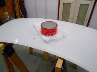 ガレージ内の温度が27℃と、少し高めだったので、硬化剤は遅硬化タイプを1.5%で調合。 |