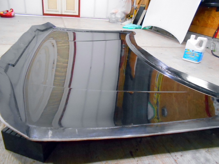 ちなみにボンネットの表面が曇っているのはこの後に行うクリヤー塗装の為に#1200のスポンジ研磨剤で足付けしたからです。 |