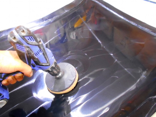 脱型したメス型はPVAの痕を#600のペーパーで水研ぎして消し、その際に出来た#600の目を#1200のペーパーで軽く目消した後、コンパウンドで磨きました。