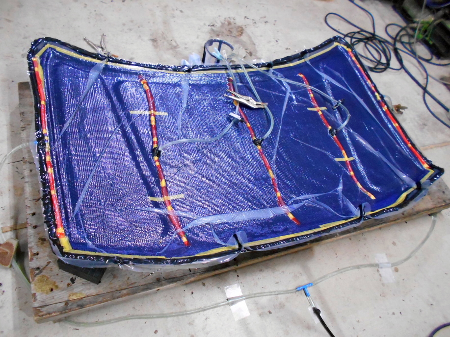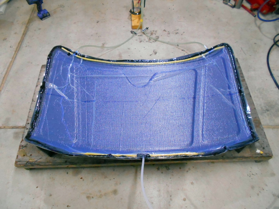 ただ、薄くても剛性を保つ目的でサンドイッチしたコアマットは真空引きでぺっちゃんこに潰れてしまい、全く剛性が無くフニャフニャ・・・。