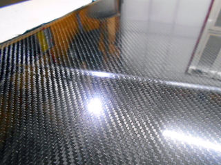 実は1枚目はカーボンクロス3プライと周囲に補強帯という構成でしたが、2枚目は残っていたカーボンクロスを全部使って全面に4プライ、周辺の帯という構成です。