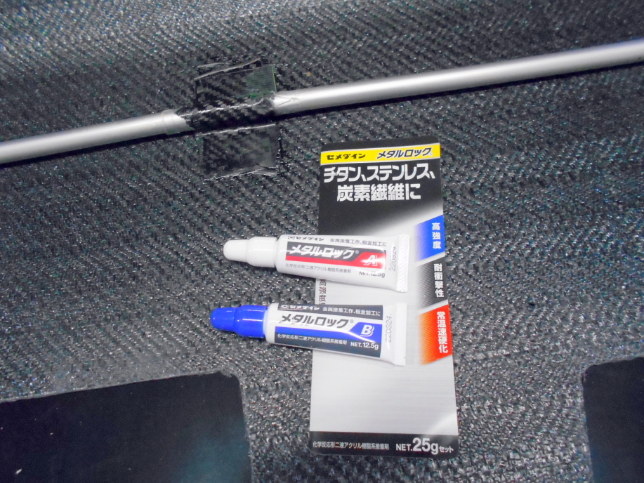 「メタルロック」という接着剤で、金属と炭素繊維を強力に接着するという代物です。