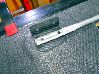 パイプの固定にはカーボンクロスでの接着を行いますが、アルミ材への接着強度が心配だったので、予めパイプにカーボンクロスを1枚巻いて樹脂で固めてあります。 |