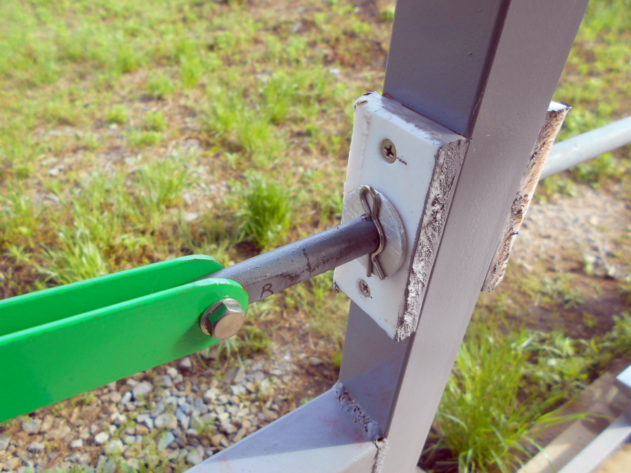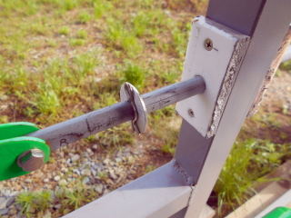 溶接で取り付けた方が簡単で時間も掛からないのですが、これもレールやローラー同じように傷んだ時に取り換えられるようにしたかった為です。 |