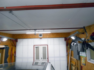 ガレージ扉は当初はガレージ(小)と同じ「スイングアップドア」にするつもりでしたが、このスイングアップタイプのドアはドア幅で室内に伸びるレールが必要で、開閉用のワイヤーも天井の真ん中を通る事、そしてドアを開けるとドアそのものが室内に入り込んできてしまうので、ドア周辺のスペースが結構犠牲になってしまう事から、違うタイプのドアを製作する事にします。