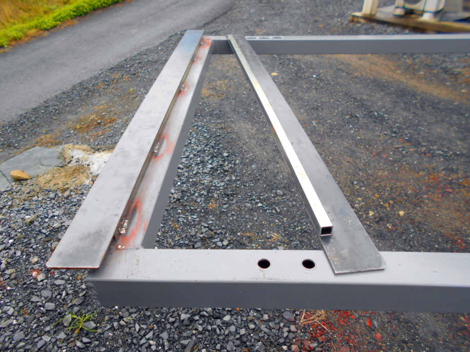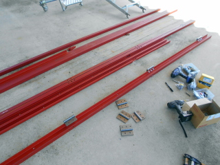 扉本体は40x40/1.6の角パイプ、レールには60x30/2.3mmのC型チャンネル材、他に40x40/3mmのL字アングルやローラー、溶接用丁番などです。 |