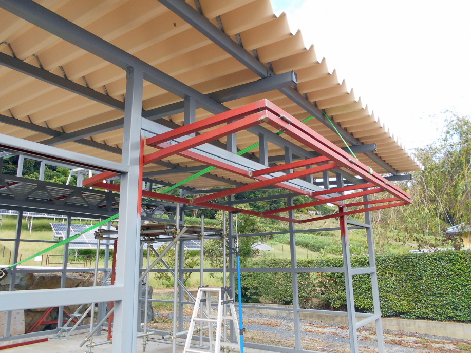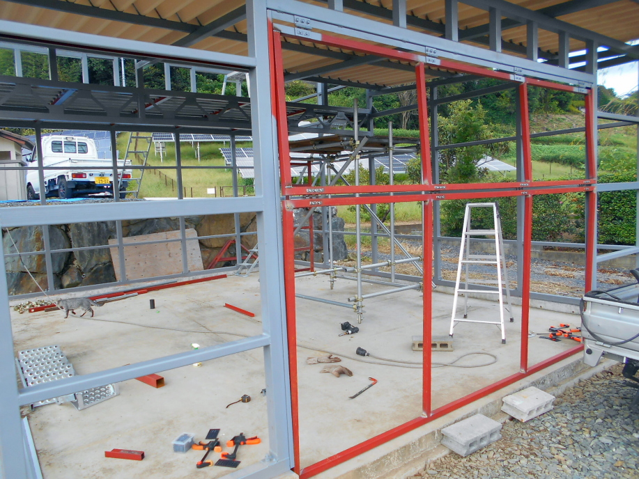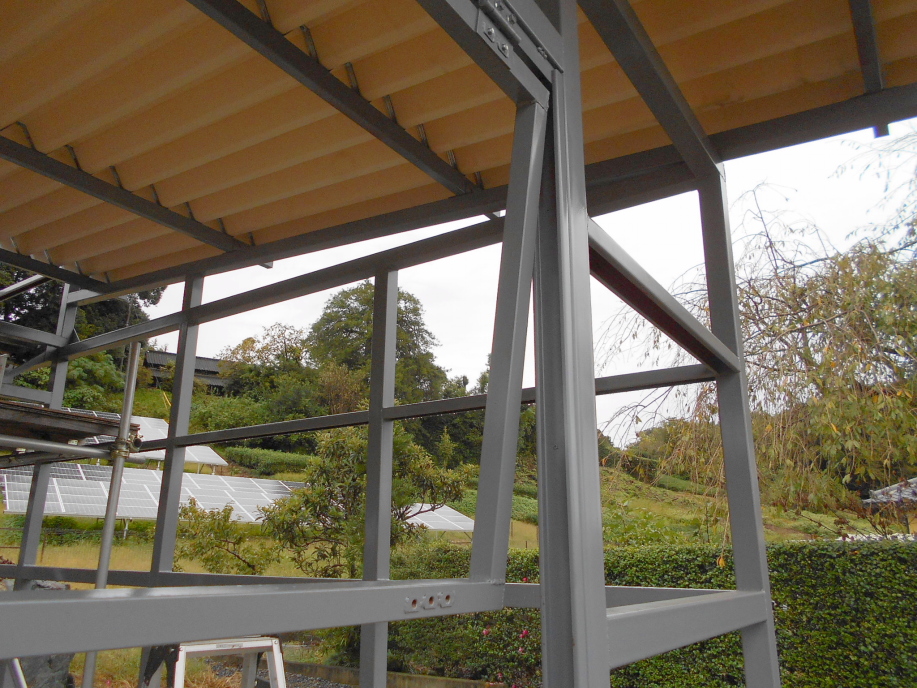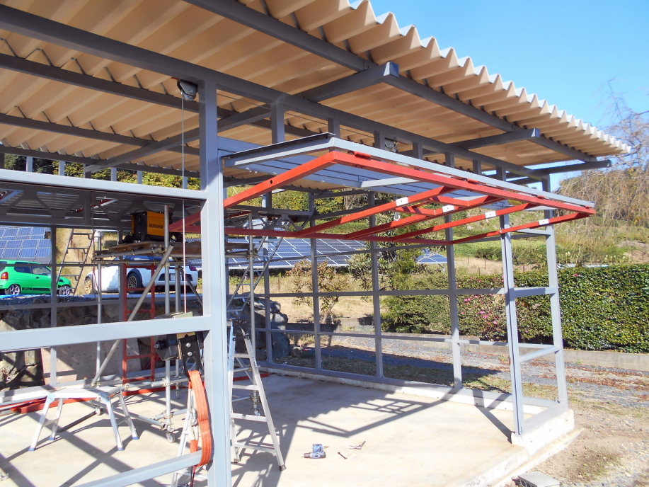 ガレージの骨組みがほぼ完成したので、すぐに外壁を取り付ける予定でしたが、新型コロナの影響(?)により外壁材の価格が高騰(今までの3倍くらい)しているので、ちょっと様子を見ることにします。