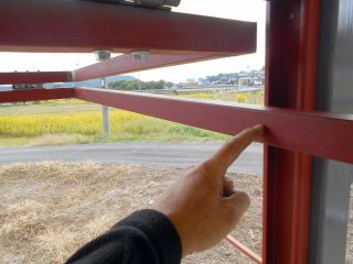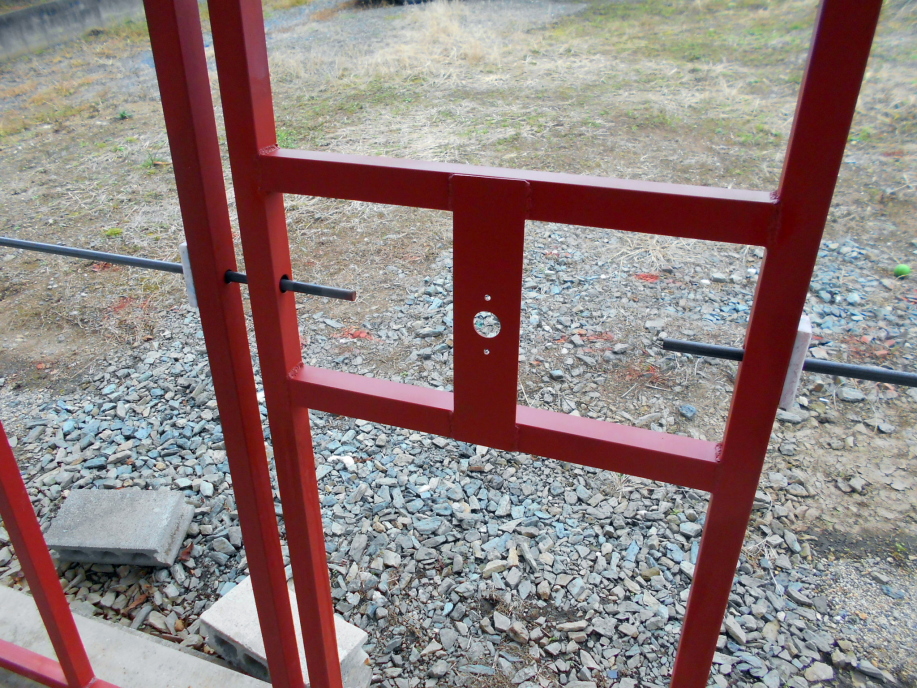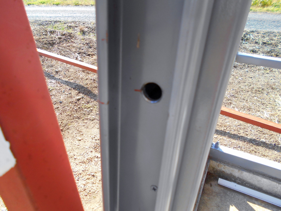 扉のロックを製作する為、パイプに穴をあけてシャフトを通してあります。