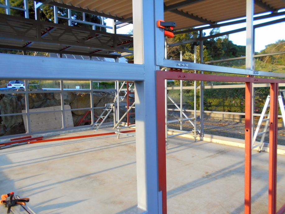 まず最初にレールになるC型チャンネル材を入り口の柱に固定。