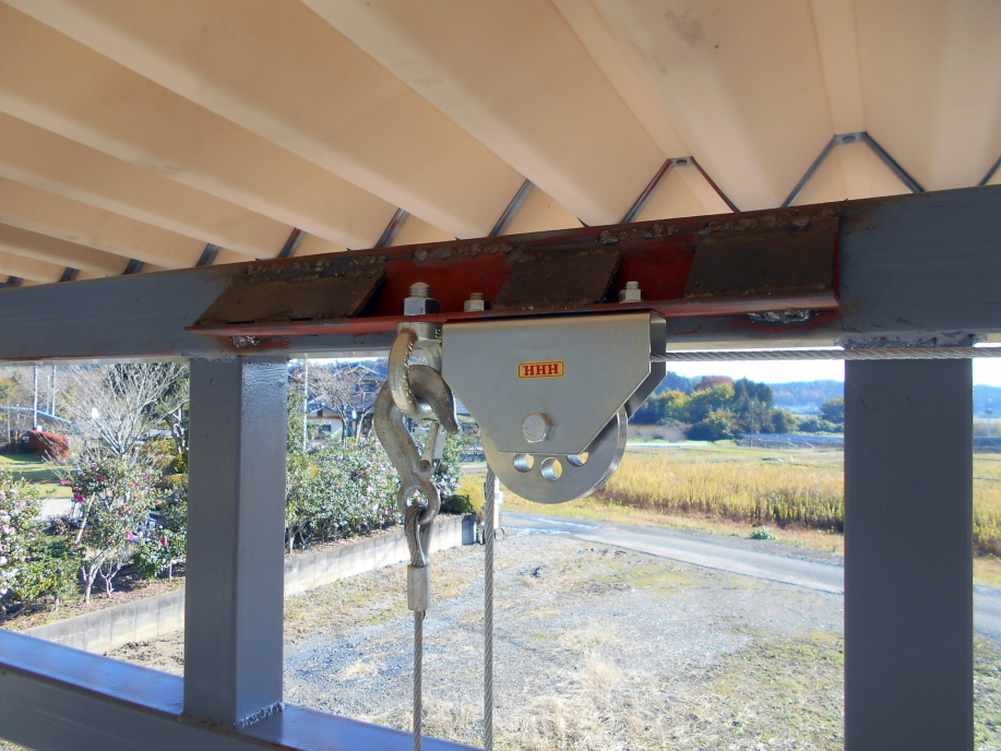 同じ滑車をもうひとつ取り付け、ワイヤーを下に降ろします。