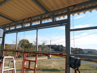 開閉テストの為、仮に付けた電動ウインチで引っ張り上げてみます。 |
