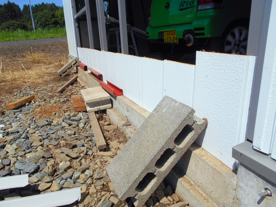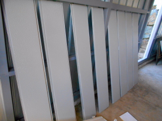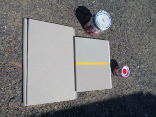まさか捨てる訳にも行かないので、急遽縦貼りに計画変更、色はさすがに白のままだと正面から見た時に真っ白になってイマイチなので、白のサイディングを塗装して使う事にします。
