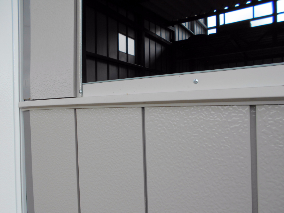外壁と同じように合わせ目にはコーキングを入れてあります。 |