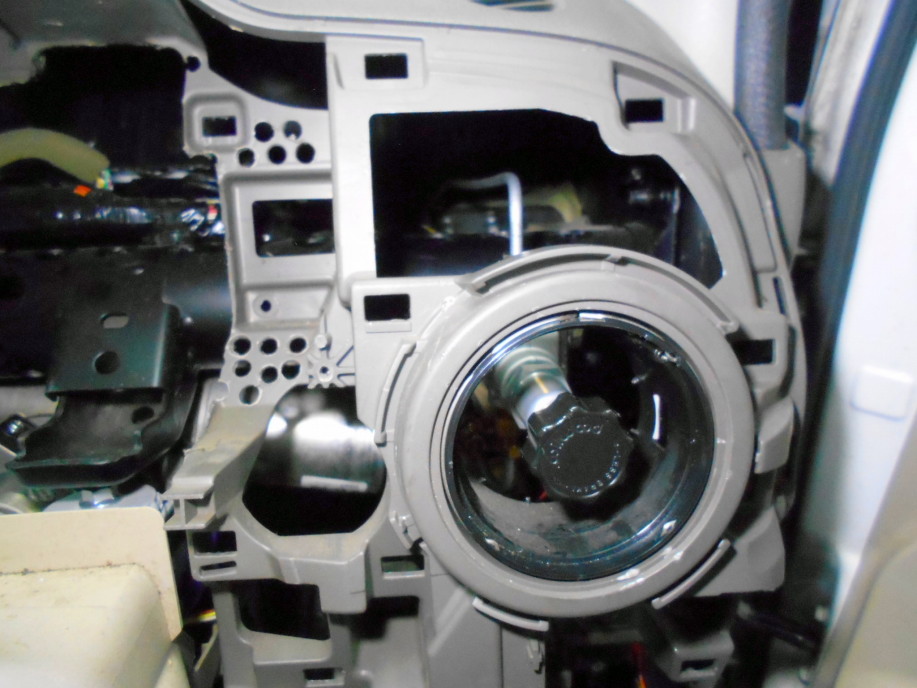 | Pバルブ本体は走行中に容易に操作できる位置にブラケットを作って固定。 あまり目立たないように、現在使用していない吹き出し口の中に取り付けました。 |