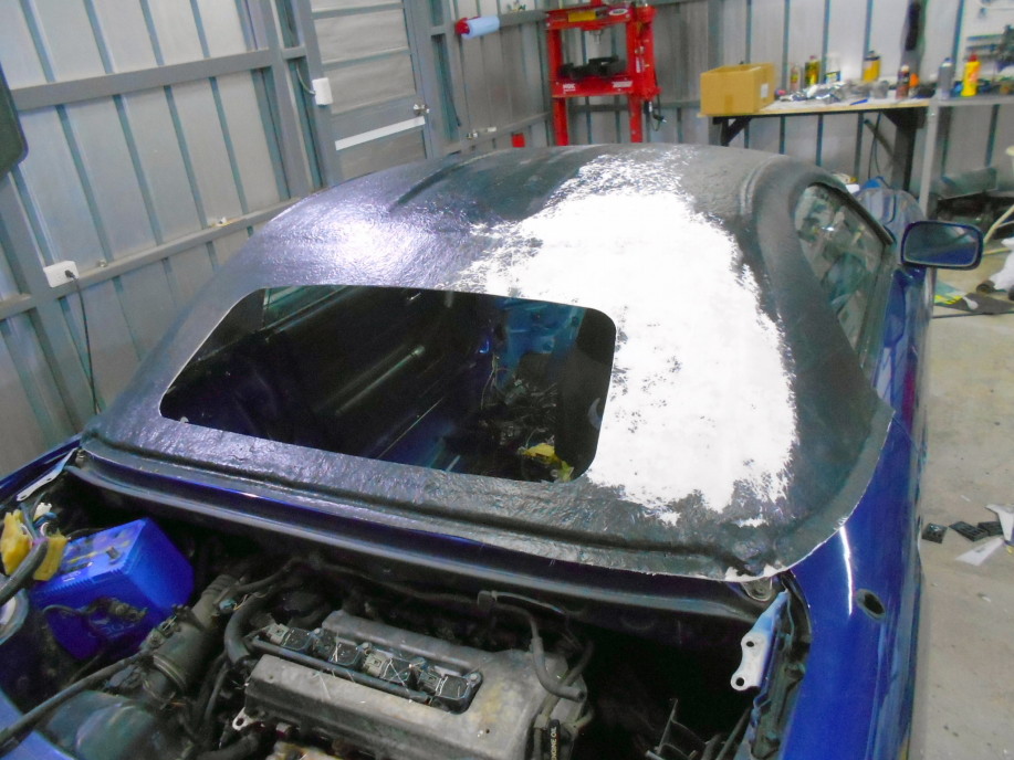 | 2024/4/28(日) GW連休初日、MR-Sのハードトップを外し、ウェザーストリップと内張りも外してエアインテークの取り付け時にあけた穴を塞いでパテ処理。 MR-Sは同時にミッションの取り外し作業も開始。 合間に緑号用スペアエンジンのエキゾーストポートの研磨作業。 #600まで進んだので、仕上がり具合は70%位。 |