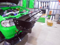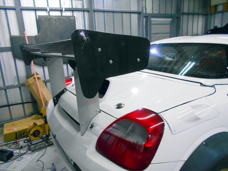 | 2025/12/5(金) 今季2回TC2000を走らせた23アルトですが、今季行った軽量化が原因なのかリアのグリップ感がイマイチで今一つ踏み切れていません。 そこでリアのダウンフォースを増やす為、幅広のリアウイングに変更する事にしました。 今までのウイングはアルミ製の2段ウイングで1100mm幅でしたが、今度は1400mm幅の樹脂製シングルウイング。 幅は30cm広くなっていますが重さは約1キロ軽くなり、先日のフロントブレーキの小径化と合わせて車重は更に2.5kg程軽くなった計算です。 現在の車重は計算上567kg。 幅は広くなったけどダブルからシングルになったのでダウンフォースがどう変化するのか、小径化したブレーキと合わせて週末の日光サーキットでテストして検証してみることにします。 |