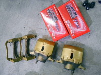 | 2025/2/6(水) 月曜火曜とFRPを積層したMR-Sのフロントエアロを脱型。 これから表面の仕上げ作業に取り掛かりますが、来週の走行に間に合うかな? MR-Sは2年間ほぼずっとカミさんが通勤と買い物に使っていただけなので色々整備が必要で、ブレーキローターは錆々だしパッド残量もちょっと少な目だったのでこの機会にブレーキ廻りの整備を一気に行うことにしました。 一度も交換したことが無いローターは前後共新品のスリットローターに交換。 ブレーキパッドはアルトで使用しているのと同じ「アクレ 700C」に交換。 キャリパーは分解してシールキットを使いO/H。 せっかくなので余っていたキャリパー用塗料で金色に染めてみました。 他には4年位使いっぱだったホイールナットも新しい物に交換。 |