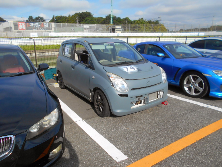 | 2025/10/21(火) 今日はアルトで今シーズン一発目のTC2000。 載せ替えたエンジンと10kg強軽量化した車体の確認を1本目で行い、 2本目で「軽めに」アタックして4秒5。 ちょっとリアタイヤ(GS)に対してスプリングが硬いかな? 寒いって程ではないのにリアのGSのグリップがイマイチ。 軽量化の弊害か単純に温度なのかは不明。 最後の3本目、タイヤを良く暖めて「とりあえず3秒台には入れとくか」と アタックに入った1コーナー、「あ!ブレーキ効かねー!?」 「ロックしてる!?」 状態で危うくコースアウトするところ、何とか回避し、 ゆっくりパドックへ。 何が起きたんだろうと車の周りを見ると・・・左タイヤにオイルが・・・。 すぐ主催スタッフさんにその旨を伝え、筑波のオフィシャルに確認してもらったところコース上には漏れ箇所は確認出来ないとのこと。 ((ホッ、良かった)) その場で調べたところ、ミッションエンドのカバーが内部の部品の接触によって亀裂が入り、そこからオイル漏れしたようです。 コースにオイルを撒かなかったのは不幸中の幸いでしたがとても自走では帰れないので急遽積載車を手配する羽目に。 さらに今日は平日でカミさんが迎えに来ることは不可能だったのですが、最近加入させていただいたチーム「Hero Racing」の「ワークス君」ことYさんに1時間半もの道のりを送っていただきまして何とか当日中に積載車でアルトを自宅まで運ぶことができました。 ありがとうございました m(_ _)m |