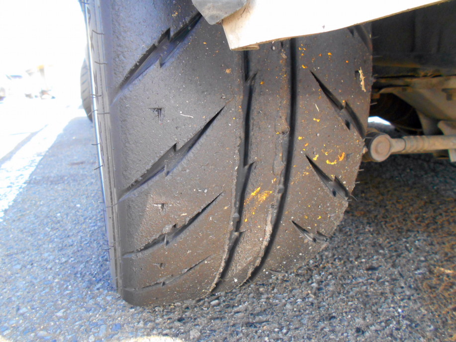 | 2025/11/06(木) 今日は仕事を休んで日光サーキットへ。 今日は少し肌寒い位の気温なので40秒台入りは確実です。 目標タイムは40秒7に設定。 1本目で40秒8、気合を入れた2本目で40秒590と目標を上回るタイムが出ました。 使用しているのは「シバタイヤ200R」 グリップ力が高く性能的に不満は無いのですが、所謂「ピックアップ」がかなり顕著に発生します。 走行中はベアリングでも壊れたのかと思うほど振動が発生するので心理的にはあまりよろしくないですね。 しかも自走で100km近い道のりを走ってきても拾ったタイヤカスが殆ど剥がれてくれません。 因みにA050は筑波から帰宅するまでに大きいタイヤカスはほぼ剥がれてくれます。 たまたま今日パドックで電動工具でタイヤカスを削っている方がいたので見てみたら・・・シバタイヤでした(笑) タイヤカスが付くのは仕方ないけどもうちょい簡単に剥がれてくれるといいんですが・・・。カスがデカいと削るのも大変なので・・・。 |