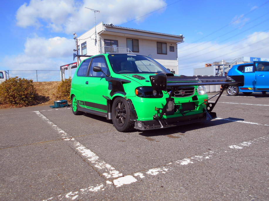 | 2025/6/3(火) 今日は久しぶりに25アルトでTC1000。 少々の軽量化とタイヤのアップグレードでベスト更新を狙っていましたが、朝から雨模様で思惑はまんまと外れてしまいました(--;) 晴れ用のタイヤセットはFFなのにMR-Sよりリアが滑る始末(笑) |