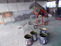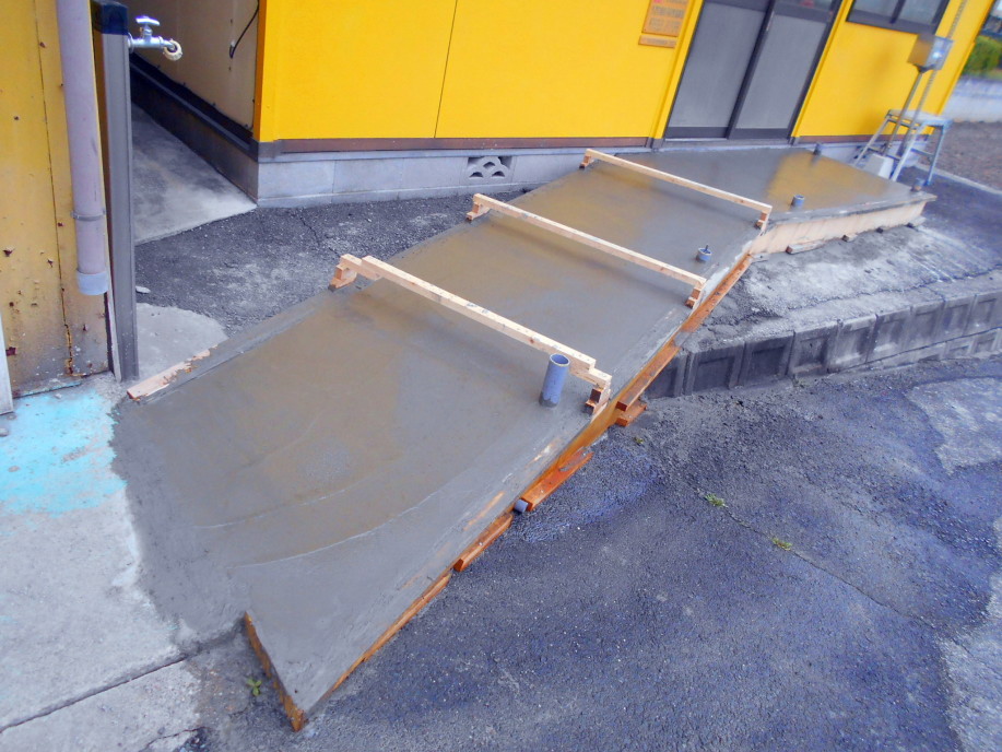 | 2025/4/28(月) 何年かぶりに自作のコンクリートミキサーを引っ張り出しコンクリ作業。 職場の入り口は段差が多く、そこをスロープ状にして段差を無くそうということになり、本職に頼むとお金がかかるんで自分達でやる事に。 数年ぶりに回した自作ミキサーは相変わらず好調で、全材料を投入してから10〜15分で特に中を突かなくてもしっかり混ざった生コンが出来上がります。 久しぶりなので最初のうちは水が多目でしたが何回か回すうちにだんだん丁度良い粘度のコンクリートが出来るようになりました。 回した回数は13回。概ね1立米くらい? 最終均しの直前に雨が降ってきてしまい、やむなくブルーシートをかけて終了。 あと1時間くらいあれば納得いく仕上がりになったはずなんだけどなぁ・・・。 |