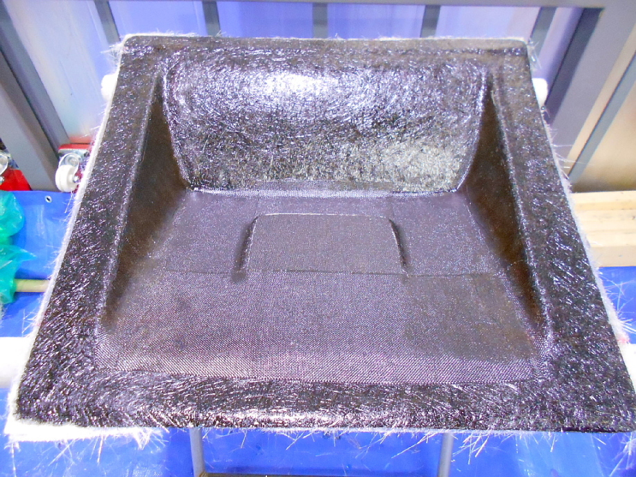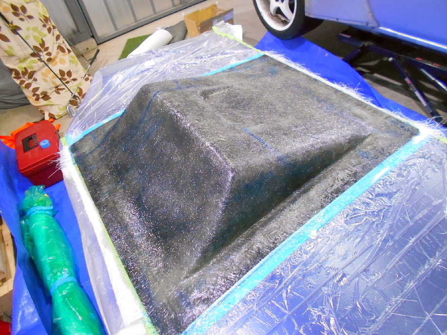 | #450マットを全体に3プライ、フランジに4層になるように積層。 天気が良かったので直射日光に当てて翌日まで放置。 |