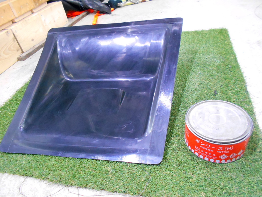 | 脱型はコンプレッサーでエアを吹き込んだら簡単に脱型出来ました。 メス型内部はピンホール、欠け、もちろんチヂミ等は一切なく、良い仕上がり具合です。 なのでペーパー掛けも磨きも全く行わず、水洗いしただけで離型ワックス処理を行う事が出来ました。 マスター型と同じようにワックス3回、PVAを塗って放置。 |