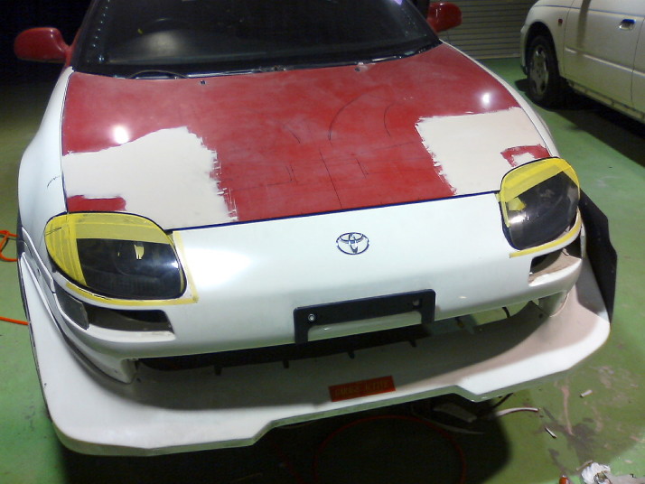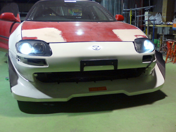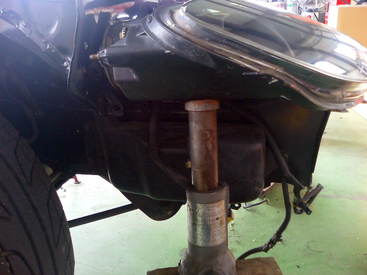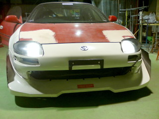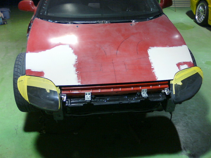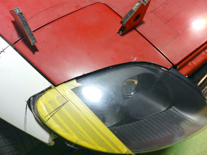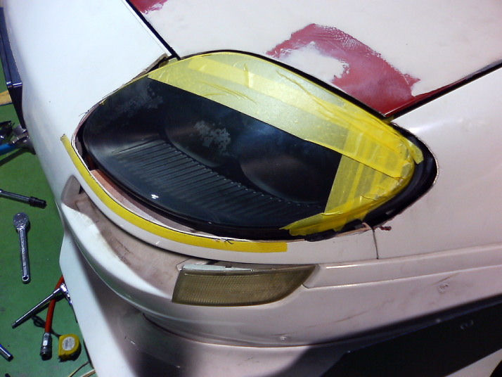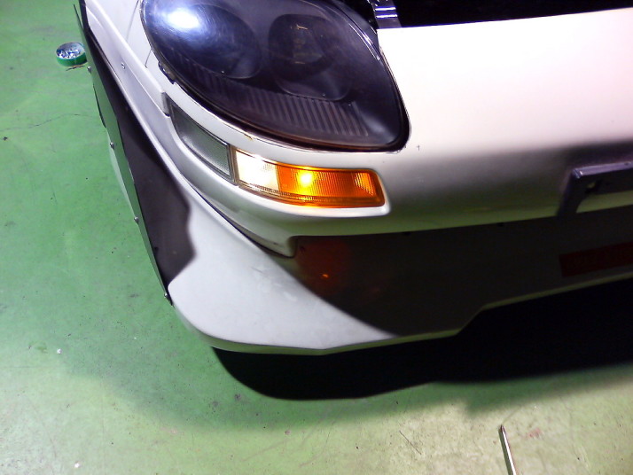 バンパー、フェンダー、ボンネット、ライトユニットを取り外した状態でFTOライトをあてがってみて位置関係を確認します。