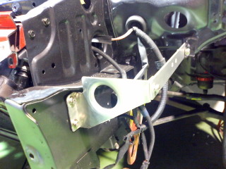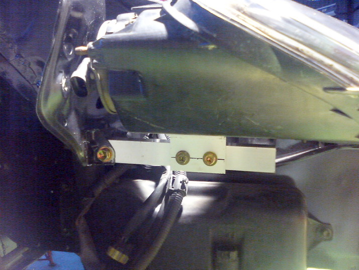 とりあえずライトの高さを決めてしまう事にし、ライトの内側のボルト固定部をバンパーステーにこんな感じのステーを作って固定してしまいます。