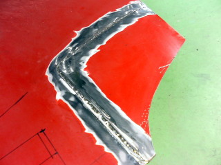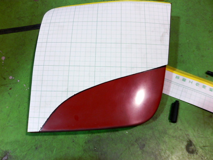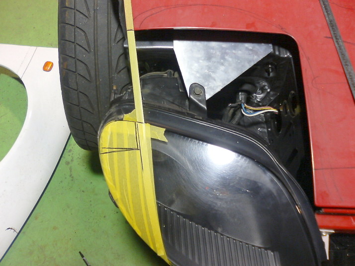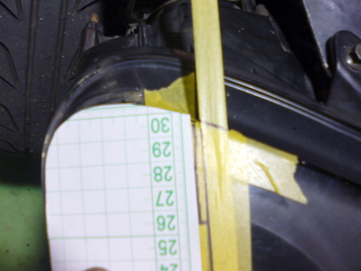 こんな感じでフェンダーのラインを出し、フェンダーの切断部分の計測をします。 |