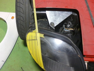フェンダーの内側も思った以上に干渉したので何度も脱着しながら当たり具合を確認して切断しました。