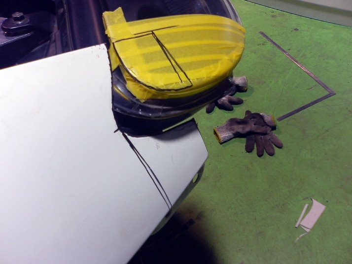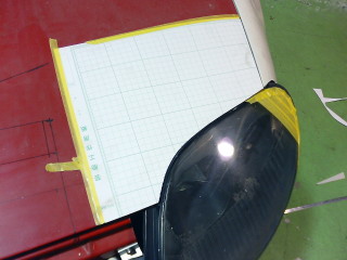 ライトとボンネットが接する部分ののカーブを正確に写し取ります。