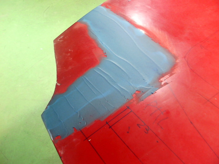 先ずは丈夫な鈑金パテで粗出しします。