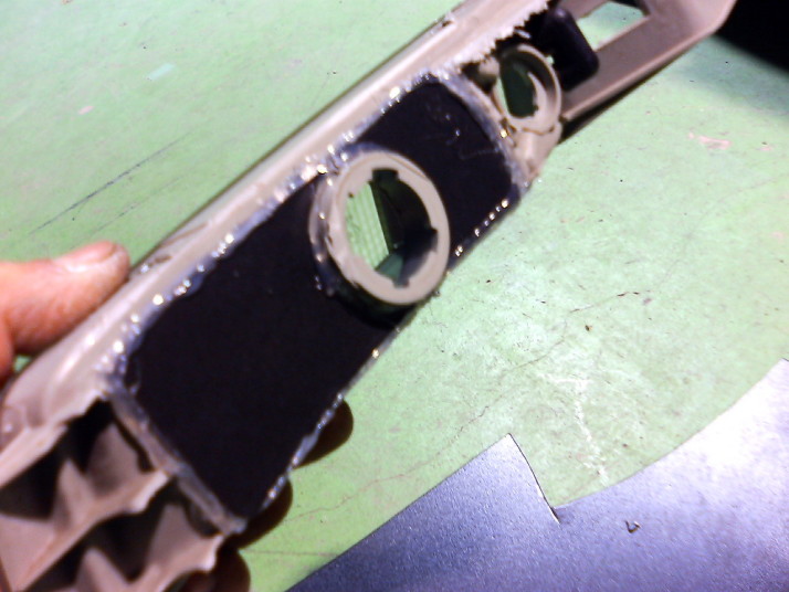 インチキ反射板をホットボンドで接着。