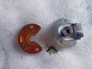 | プレートの裏にはフローティングメタルが付いています。 リビルト済みタービンだったので、当然傷や摩耗も無く、良い状態です。 |