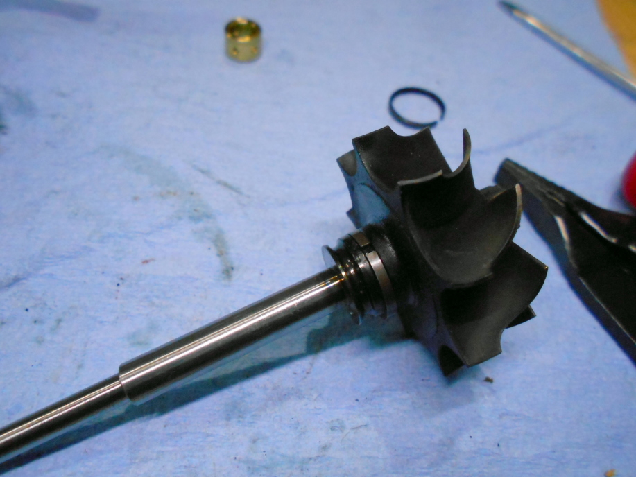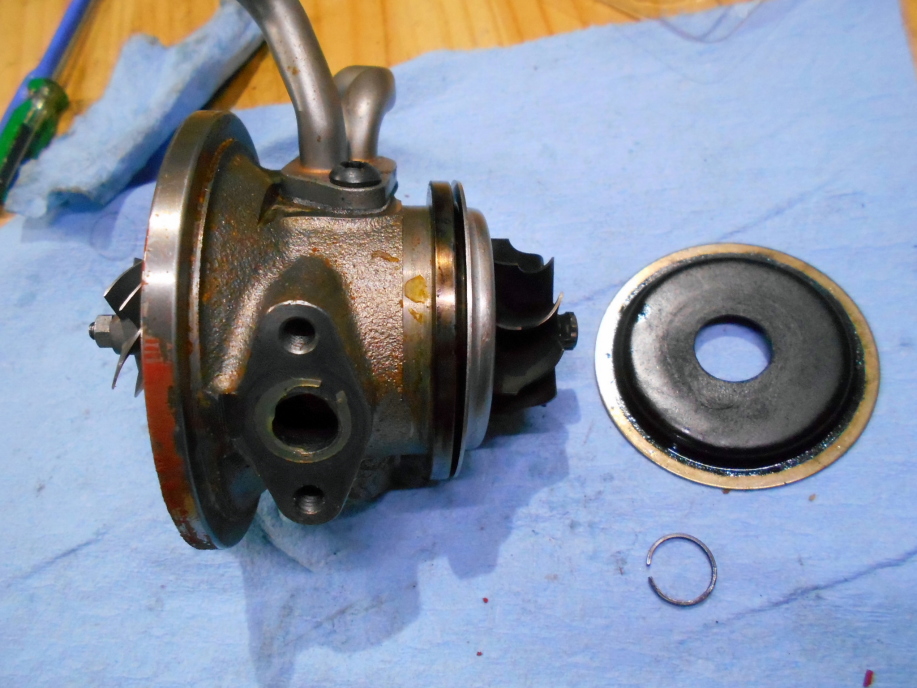 | タービンホイールの裏側に入るカバーも同じサイズだったので新しい方を組み込みます。 | |