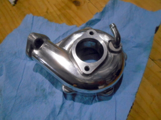 | コンプレッサーハウジングは何となく眺めていたら・・・いつの間にか磨いていました(笑) もちろん外面だけではなく、吸入口と吐出口の中も磨いてありますよ。 |