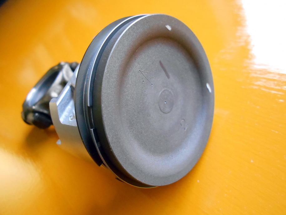 | ピストン上面も同じ感じで薄っすらと湿ったカーボンが付着しているだけ。 画像は取り忘れましたが、オイルパン内やブロック内部、タペットカバー内部も走行距離と「車両側の程度」(前オーナーの手入れ具合というか愛情の注ぎ具合?) ↑ (あまり良い状態ではないという意味ですよ) から想像するとちょっとキレイすぎ。 前述の状態からしてオーバーホールしたとは考え難いので、もしかするとこの車、途中でリビルトエンジンに乗せ換えた可能性がありますね。 |