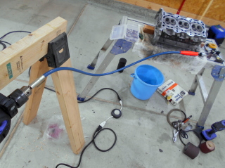 | ポートも特に何もしない予定でしたが、バルブシートリング付近に目に余るようなひどい段差があったので、その段差を切削修正するついでにポート研磨に突入してしまいました。 | |