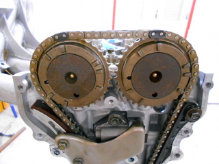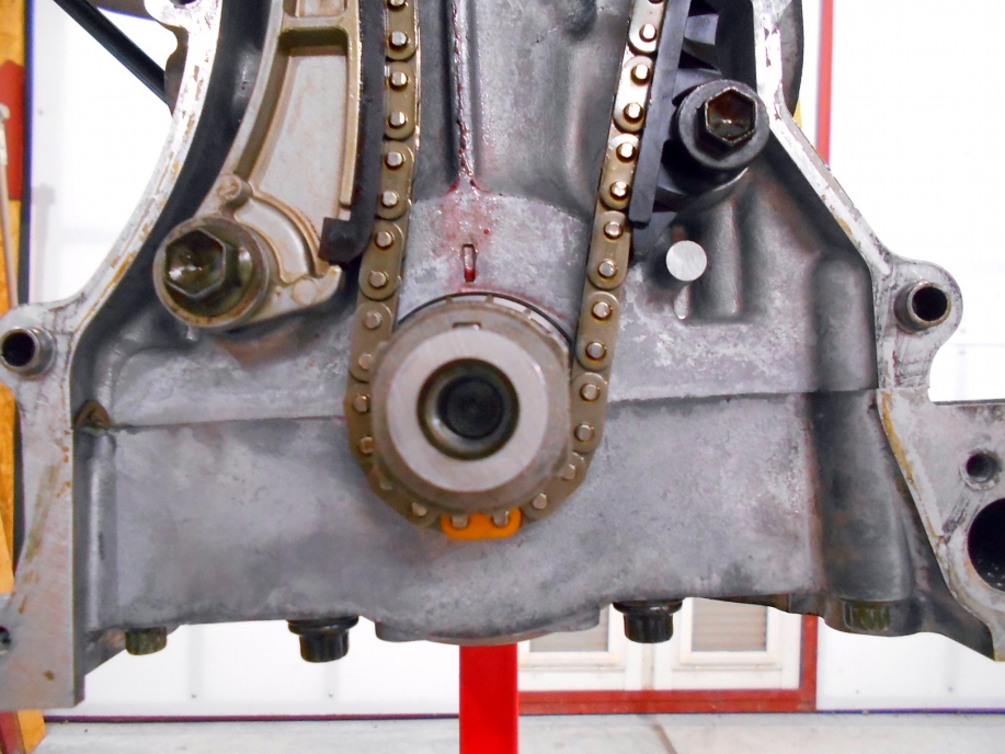| あとはどんどん組立てていきます。 カムチェーンをスプロケットの合マークとチェーンの色が違っているコマに合わせます。 |