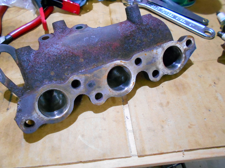 | エンジン本体は完成したので付属品の取り付けに入ります。 まずはエキゾーストマニホールド。 軽く段付きを修正研磨しておきます。 |