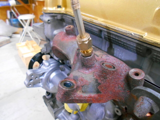 | カムシャフトを載せ、バルブクリアランス測定&調整。 分解前に計測はしていなかったので元の数値は不明ですが、摺り合わせをしたわりにあまりクリアランスは狭くなっていないようです。 エキゾースト側の4カ所だけ狭かったので調整します。 |