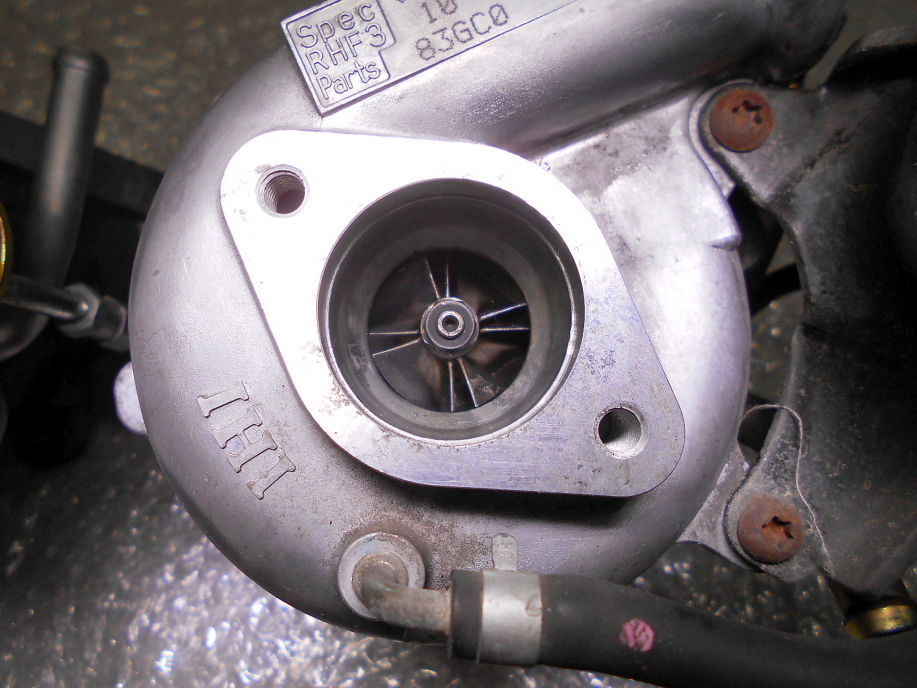 | タービンもしょっぱなから社外品を取り付けます(笑) 購入したのは 「山本自動車」さんの「GT100SPLタービン」 対応出力は80PS〜100PSだそうです。 |