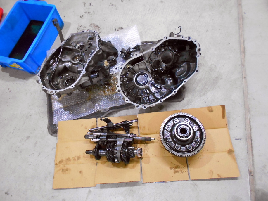 | 機械式LSDを組み込むのでミッションも分解しましたが、LSDの入荷まで1か月近く掛かるそうです・・・。 | |