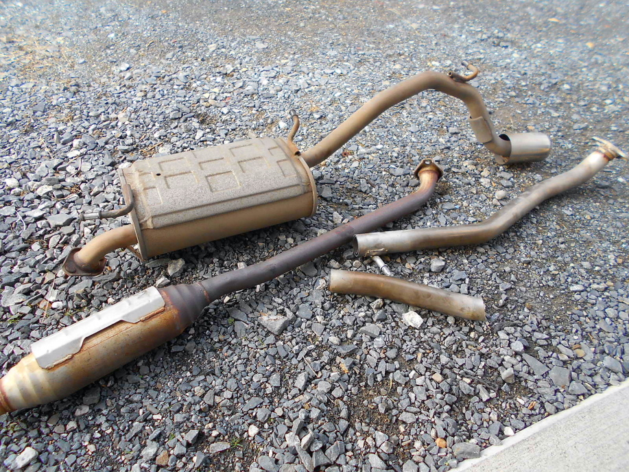 | とりあえずで付けていたKeiのノーマルマフラーですがNAのアルトバン用と太さがほぼ同じな上、ちょっと重すぎるので、軽量化の為にマフラーを作ります。 | |