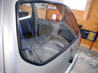 | リアハッチのガラスはゴムパッキンの関係で元のガラスと同じ厚み(3mm)にしました。 それでも3.5kg→1.8kgとなり、1.7kgの軽量化。 |