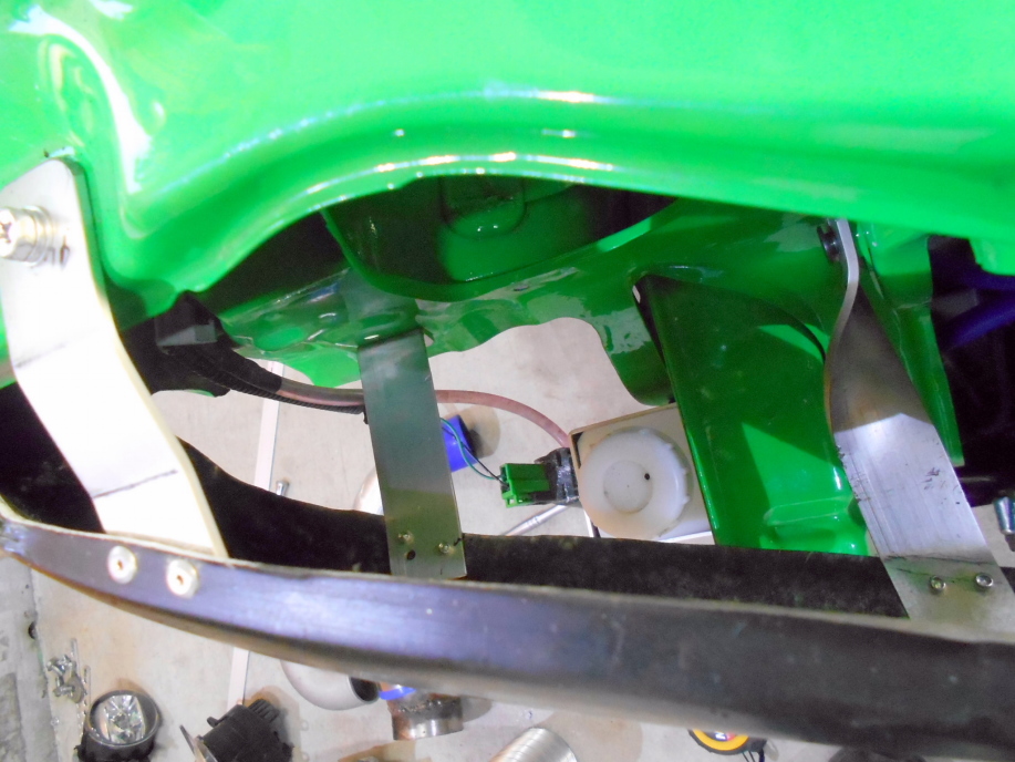| 純正のウインカー配線から分岐させた配線に別途二極カプラーを取り付けて接続。 ヘッドライトインテークは巣穴等をパテ処理し、サフェーサーを塗ってあります。 |