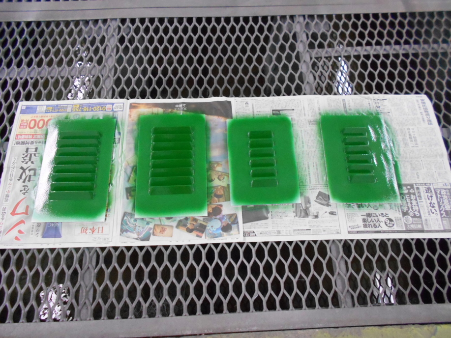 丸一日PVAを乾かした後、製品用ゲルコート(黒)をスプレーガンで塗布。