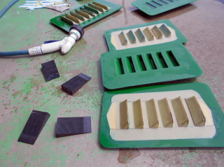 今回は一気に必要枚数貼り込んでしまう予定なので、型用ではありませんが「低発熱低収縮」の樹脂を使用します。