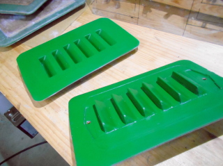 手前の大きい方の型の輪郭部分に白い部分がありますが、これは途中でシートワックスが足りなくなり、急遽同じ厚みの塩ビ板を両面テープで貼った為です。